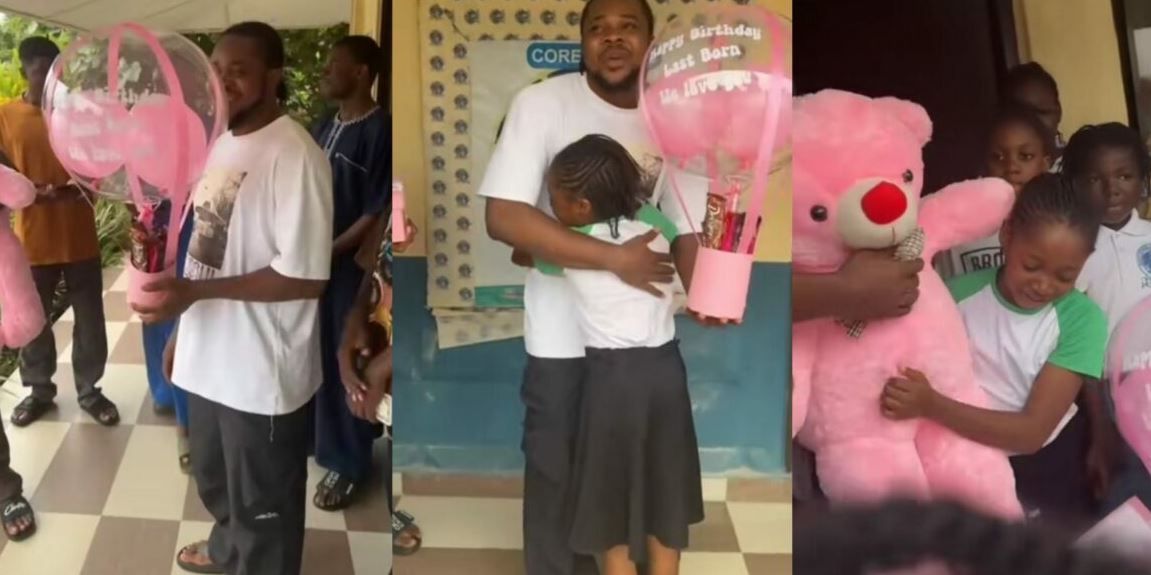 A video has captured the heartwarming moment a man arrived at his junior sister’s school to surprise her with gifts on her birthday.