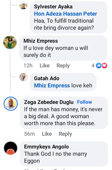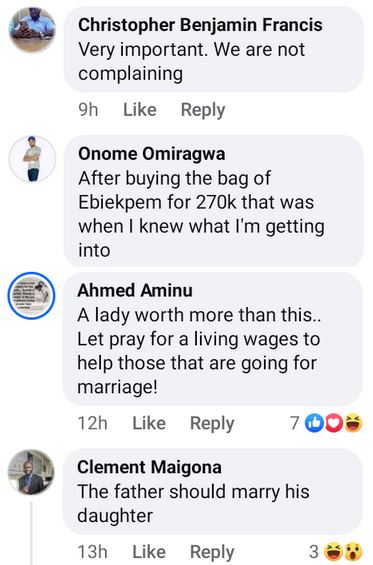 In a Facebook post on Friday, December 6, some people expressed their approval of the fixed bride price while others insisted that the requirements are still too high.