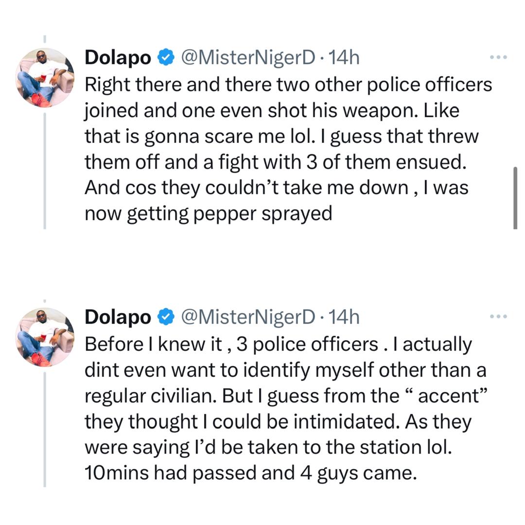 A Nigerian US veteran has shared his account of being allegedly mistreated by police officers after a confrontation in which one of the officers pointed a gun at him.
