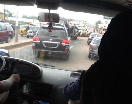 Governor Okorocha's convoy blocked by herdsmen (Photo credit: Ike Aboniyi)