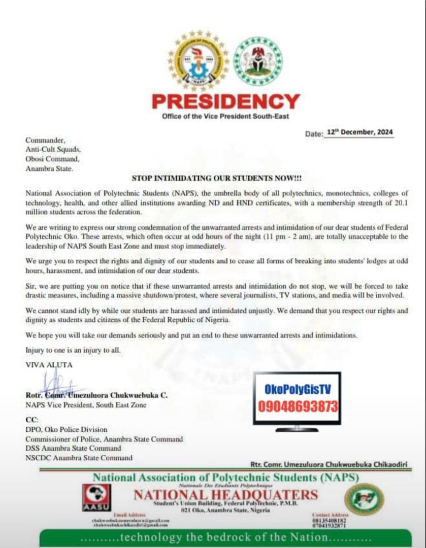 The Special Anti-Cultism Squad, previously known as the Special Anti-Robbery Squad (SARS) in Anambra State, has been accused of raiding student hostels at night and arbitrarily arresting students.