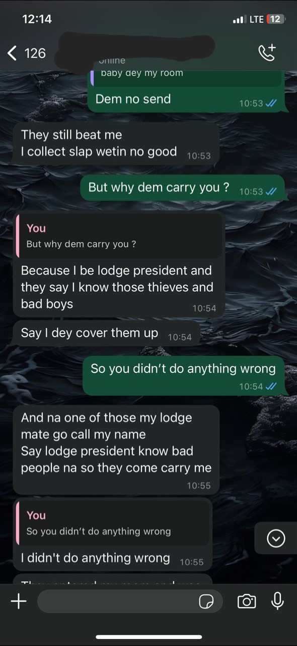 "On December 10, 2024, individuals claiming to be from the Special Anti-Cultism Squad of the Nigerian police force broke into the Matt City Lodge at Triple Tree Hotel, where many students were staying, and arrested several innocent individuals in the dead of night.