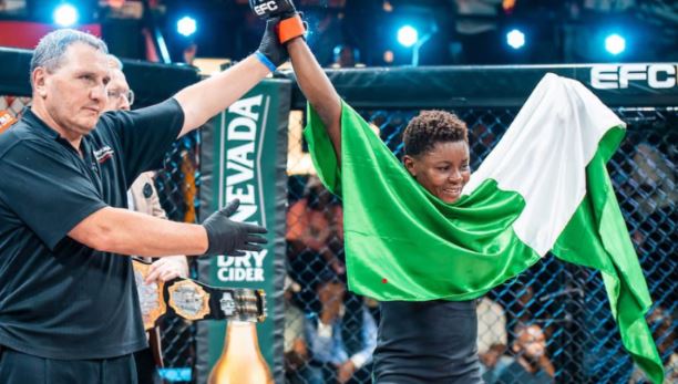 Corporal Juliet Chukwu of the Nigeria Police Force has earned international recognition for the country by winning the Bantamweight Championship title at the renowned Extreme Fighting Championship in Johannesburg, South Africa.