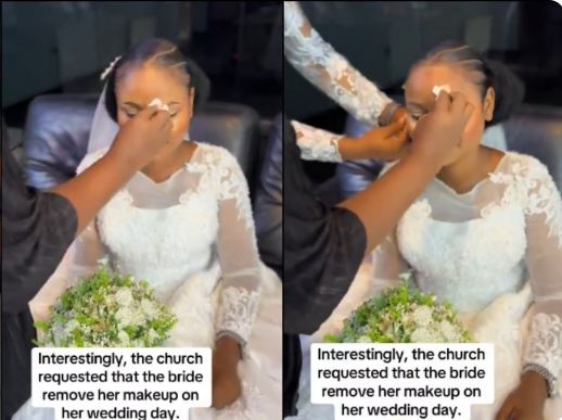 A lady has shared a video showing the moment a bride was ordered by a church to remove her makeup before she would be wedded.