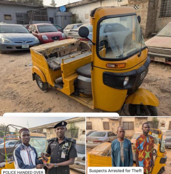 "During the operation, two suspects, Ado Yusuf (40) and Rabi'u Suleiman (35), were arrested, and the two tricycles were recovered from them. On preliminary investigations, the suspects could not provide a satisfactory account of the tricycles.
