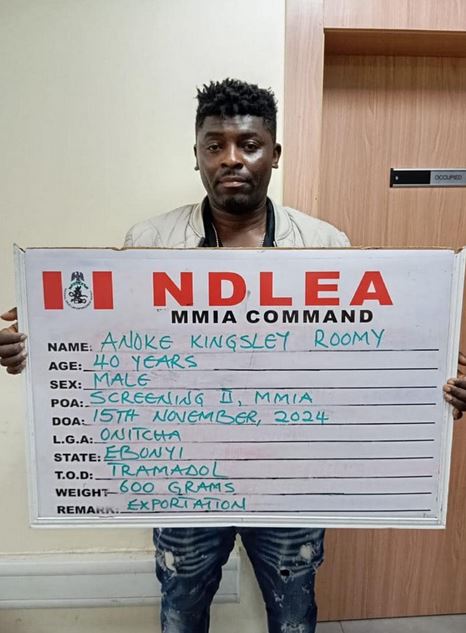 Earlier during his arraignment, the NDLEA prosecutor, Abu Ibrahim, told the court that Roomy was arrested on November 15, 2024, during the screening of passengers boarding Ethiopian Airlines at the Murtala Mohammed International Airport, Ikeja.