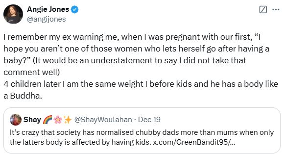 “I remember my ex warning me, when I was pregnant with our first, “I hope you aren’t one of those women who lets herself go after having a baby?” (It would be an understatement to say I did not take that comment well)