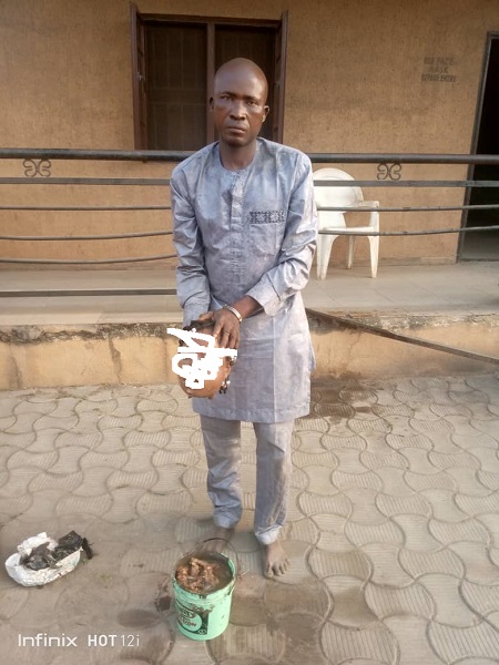 He was arrested by the operatives of the Ogun State Police Command for being in possession of fresh human head and dismembered body parts of a female victim in Lafenwa area of Abeokuta.