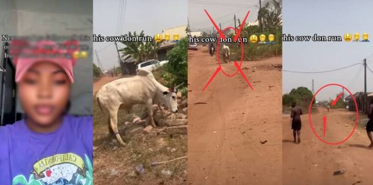 In a video posted on TikTok, the woman showed the cow tied down moments before it managed to escape, leaving her in distress.