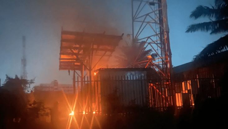 Men of the Lagos State Fire and Rescue Service and the Lagos State Emergency Management Authority (LASEMA) are battling to contain the blaze and prevent the flames from spreading to adjoining offices and buildings.