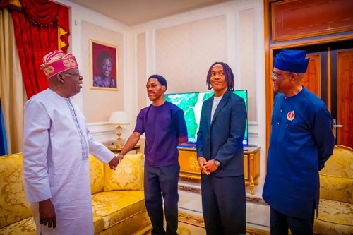 The Federal Capital Territory, FCT, Minister, Nyesom Wike has taken his two sons to pay Christmas Homage to President Bola Ahmed Tinubu in Lagos.