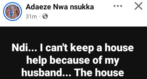 The woman slammed the wives who say they can't keep house helps because of their husbands.