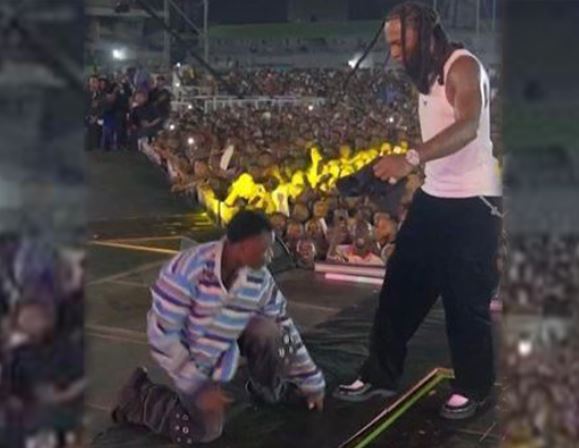 A viral video of a fan who jumped on stage and was kicked by Burna Boy during the Lagos concert has sparked criticisms for the musician with many condemning his action.