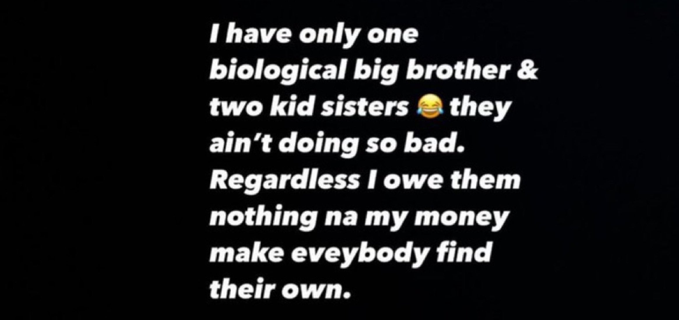 "Make una show workings; na musician you fit even give am verse. I have only one biological big brother & two kid sisters. They ain’t doing so bad.