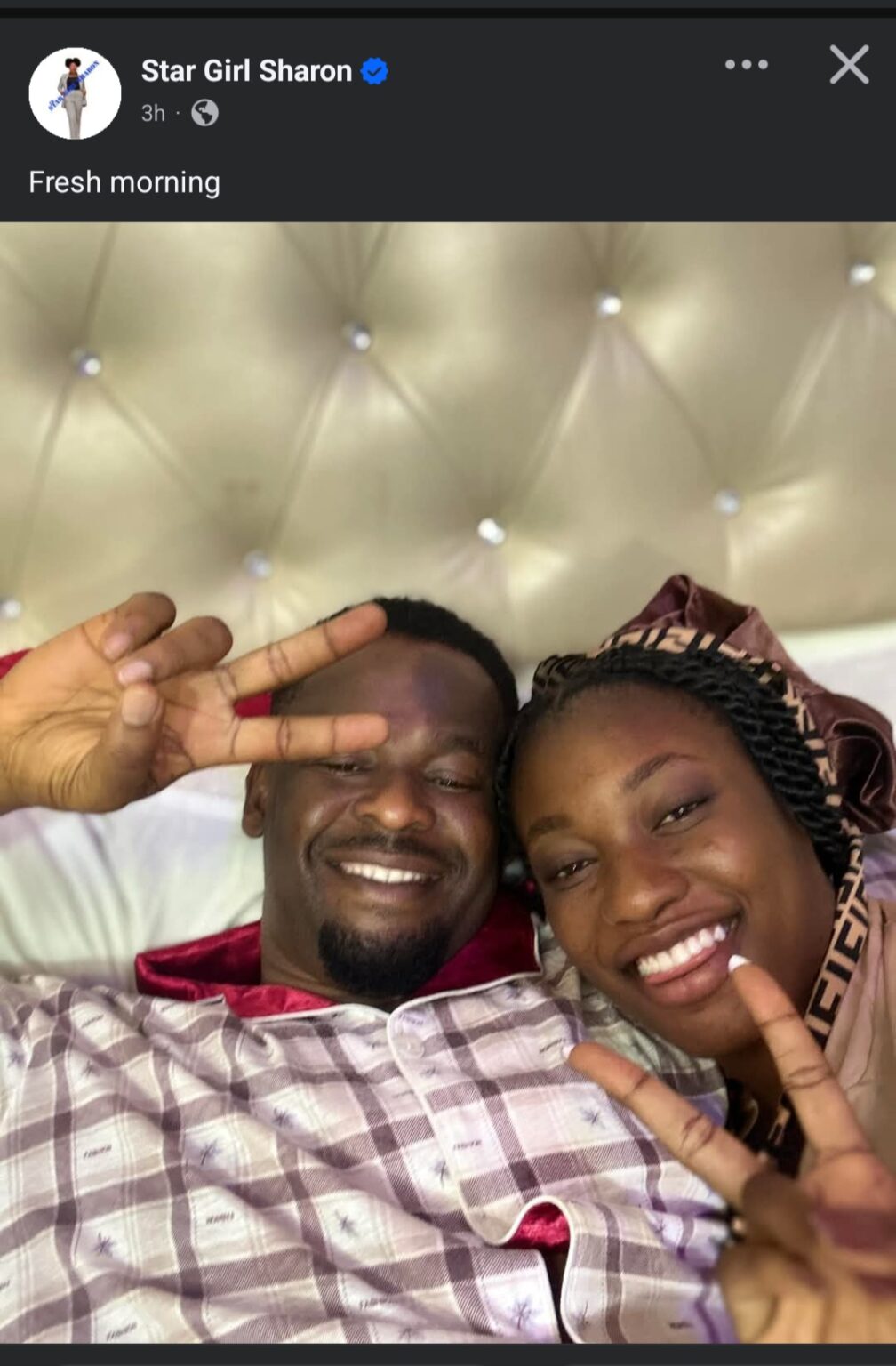 Young actress Sharon Ifedi has shared a bedroom photo with actor Zubby Michael leaving tongues wagging on social media.