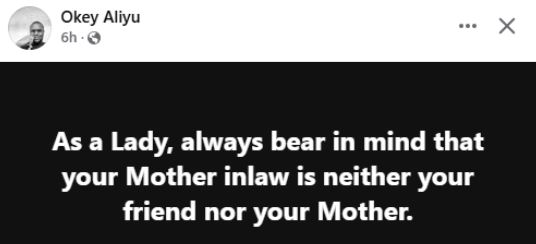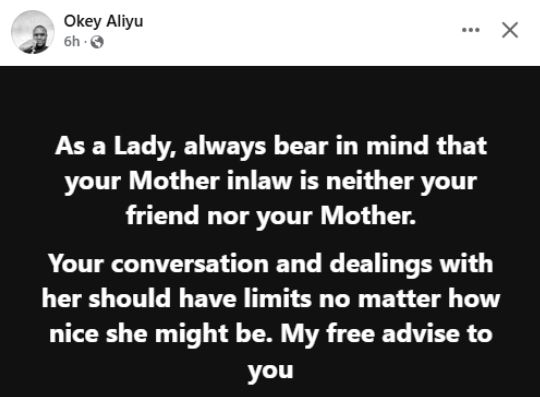 The man advised women to always bear in mind that their mothers-in-laws are neither their friends nor mothers.