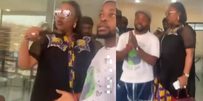 The video showed an unidentified man bringing out his mobile phone to make a video of the actions as they unfolded between Benson-Awoyinka and Onikeku.