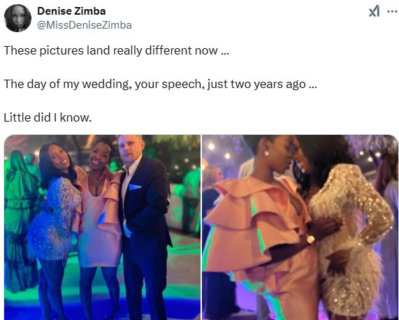 In an update, Denise posted photos of herself with her Schlichtig and the friend identified as Mpumi Mdluli. The photos were taken at Denise's wedding.