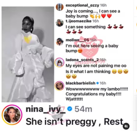 Reacting to the rumour, Nina Ivy took to the comment section to debunk the claim.