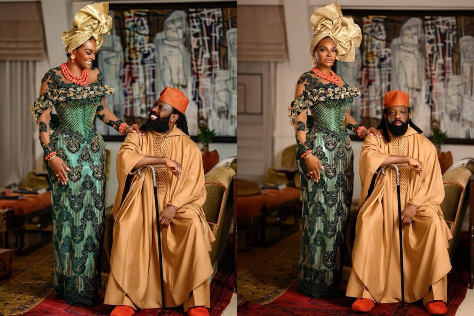 Brooke Bailey dressed like an Igbo bride, while Timaya stuck to his roots by looking regal in a Bayelsa attire.