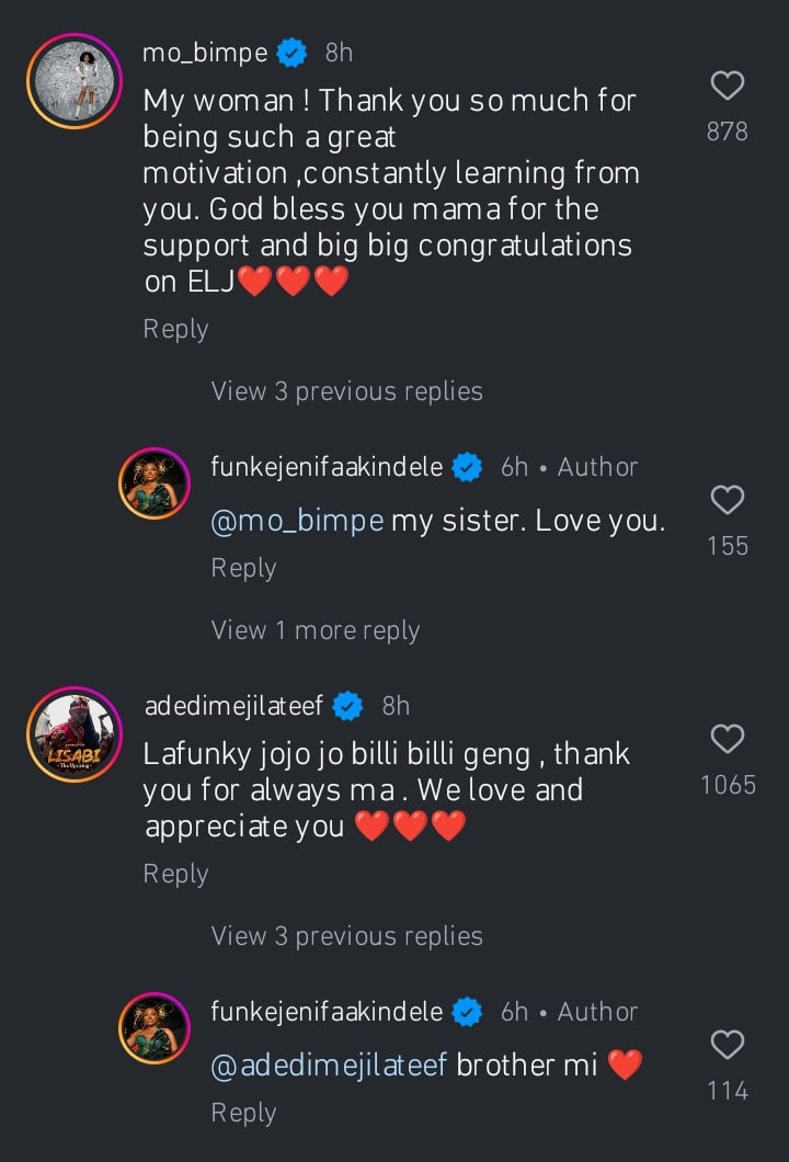 Reacting, Mo Bimpe took to the comment section to express gratitude to Funke.