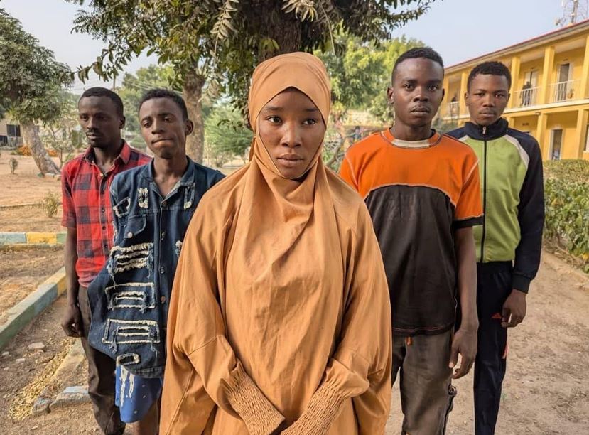 A 19-year-old female gang leader, Shamsiyya Adamu alongside four members of her criminal gang has been arraigned for criminal conspiracy, trespass, and theft by the Kano State Police Command.