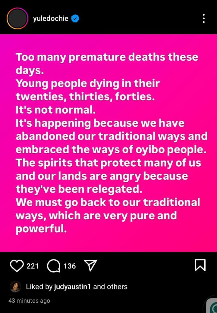 Nollywood actor, Yul Edochie has lamented over the high number of premature deaths in Nigeria.