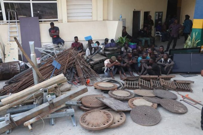 According to the police, about 25 manhole covers, three vehicles, vandalised solar streetlights, galvanised rods used in the construction of flyovers, and other tools used in vandalising government installations and several other exhibits were also recovered during the operation.