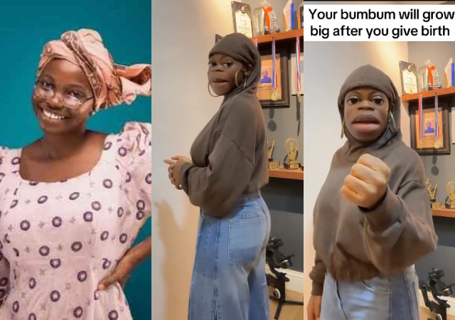 A caption on the video read: “Your bumbum will grow big after you give birth.”