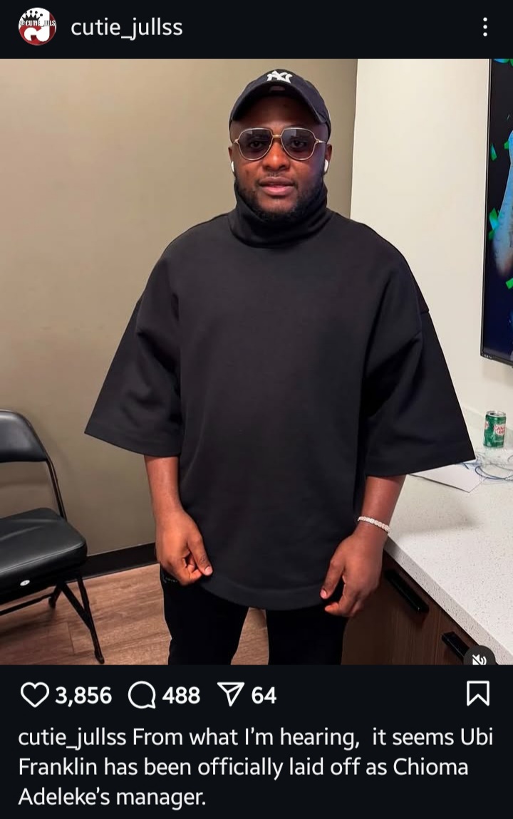 “From what I’m hearing, it seems Ubi Franklin has been officially laid off as Chioma Adeleke’s manager”