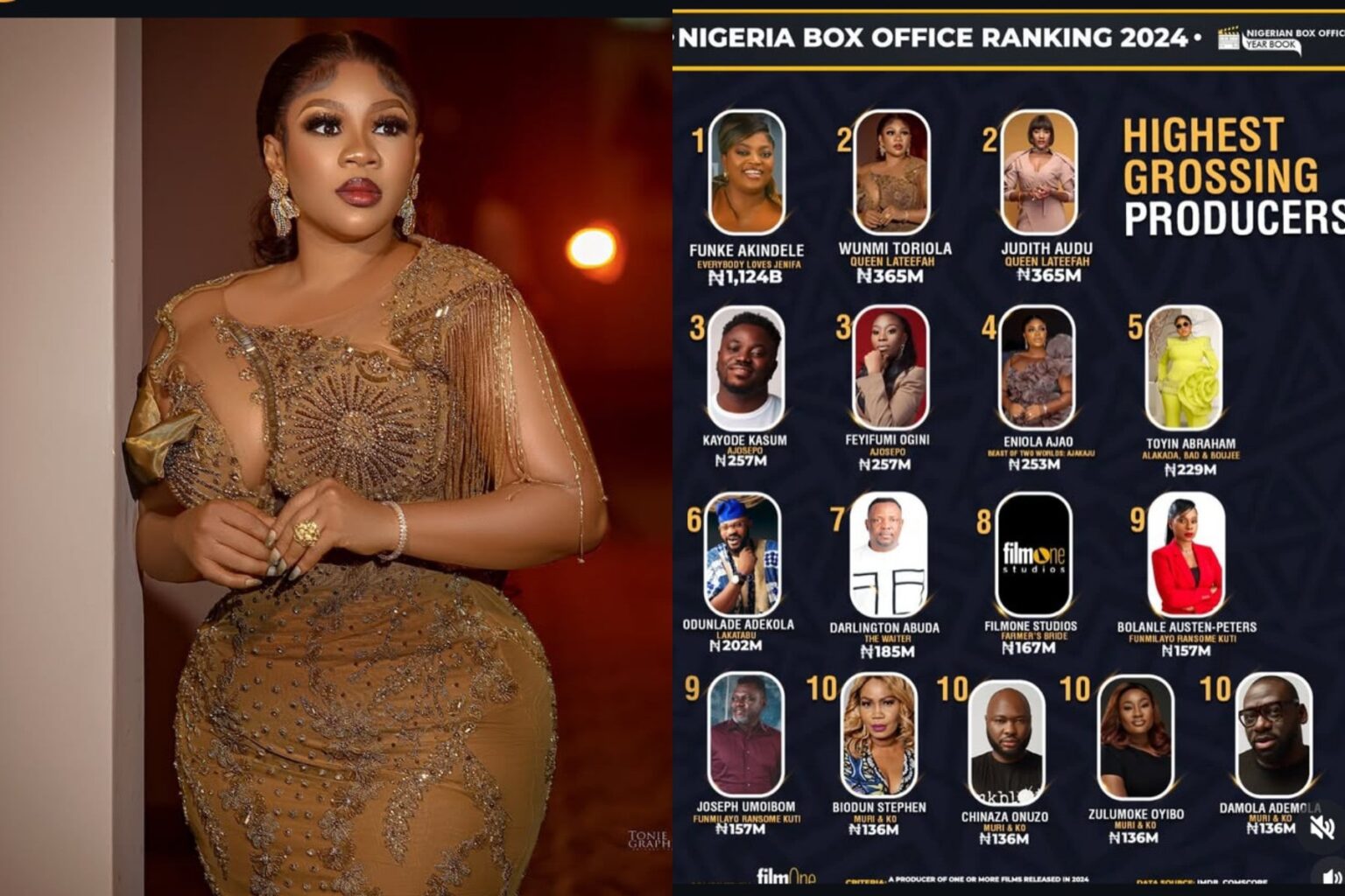 Nollywood actress Wumi Toriola has expressed joy after becoming the second highest-grossing producer in 2024.