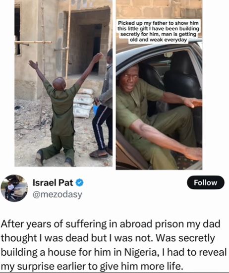 A Nigerian man was filled with great joy and surprise when his son revealed a house he had been secretly building for him.