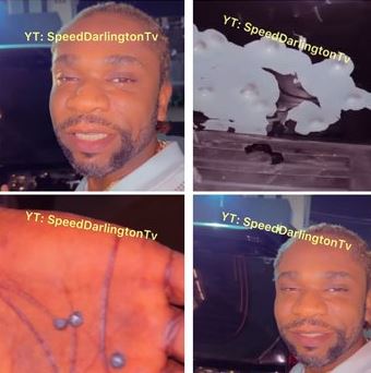Speed Darlington posted a video of his damaged car. He said he and his driver heard gunshots and a check later showed that the shots were fired at his car, leaving dents on the body of the car.