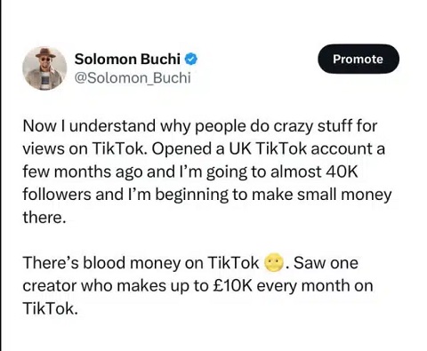 Social media influencer, Solomon Buchi claimed that there is blood money on Tiktok.