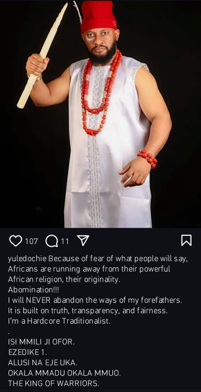 Controversial Nollywood actor, Yul Edochie has vowed never to abandon the ways of his forefathers.