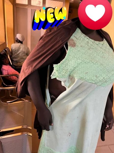 "Today, this lady was rescued by neighbours from an alleged r@pist who pretended to be a customer ( she sells petty things), seeing that the area was very quiet and nobody was around, the alleged r@pist started hitting her and attempted to r@pe her before she was able to scream which attracted the attention of some "maiguards" around who rescued her from the beast of a man. If not for the timely intervention of the maiguards, he would have had his way because he had already tore the survivors clothes. Imagine! Women are not even safe in their homes, where is safe for us?