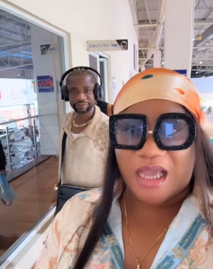 Nkechi Blessing Reacts as She Catches Speed Darlington Admiring Her Bum at The Airport