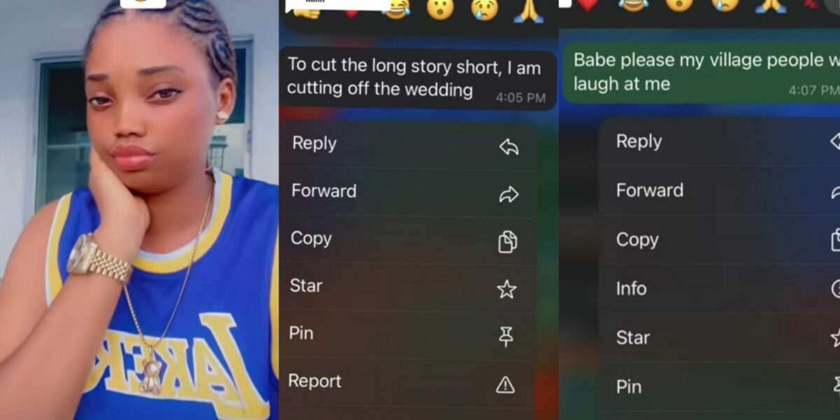 She stated that her man called off the wedding after finding her secret chats with an ex lover.