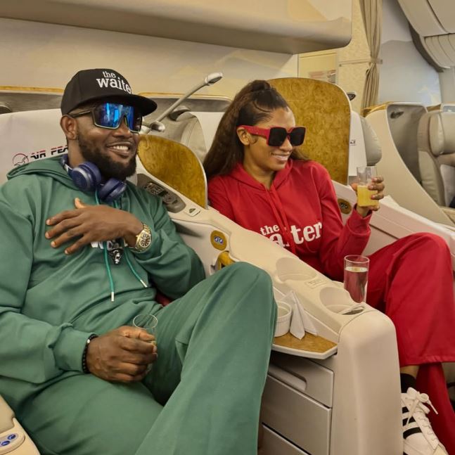 The businesswoman could be seen traveling in a business class with comedian, AY Makun.