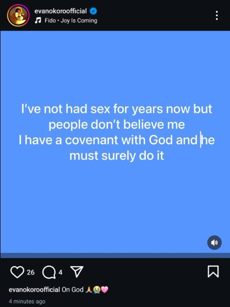 Nigerian actress and filmmaker Evan Okoro has made a confession.