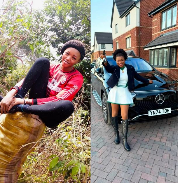 She showed herself in the village, sitting on a bag of cassava. She also added a photo she took recently after acquiring a Mercedes-Benz EQS 450.