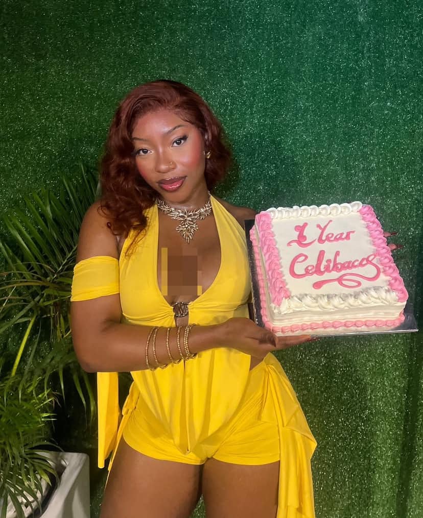 In a follow-up post, she shared a photo of herself holding a cake with the inscription "1 year celibacy," marking the occasion in style.