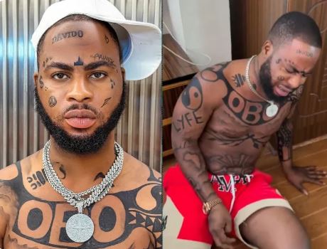 The content creator had shown his love for Davido by temporarily inking the singer's name and other tattoos on his body.