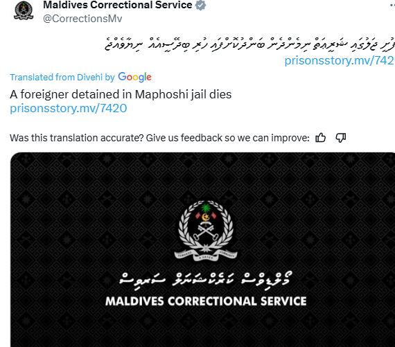 The Inspector of Correctional Service, Maldives Police Service, Human Rights Commission of the Maldives, National Integrity Commission, and the Prosecutor General’s Office have been informed of his death.