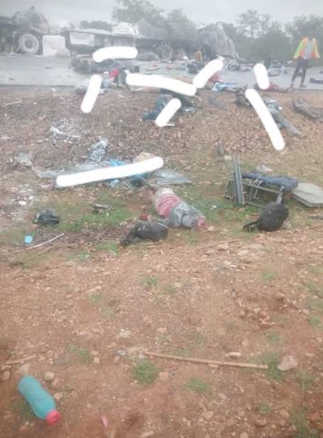 State media showed pictures of some covered bodies lying on the ground and the mangled wreckages of the bus and truck.