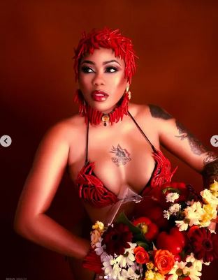 “HAPPY VALENTINE’S DAY LOVERS FROM THE DESK OF KOF. Go and pepper dem. Shot by The Lenslord @segun_wealth Makeup @makeupbyrasheda Pepper masterpiece Designed by the Kof via @elegantebytiannah styling,” she wrote.