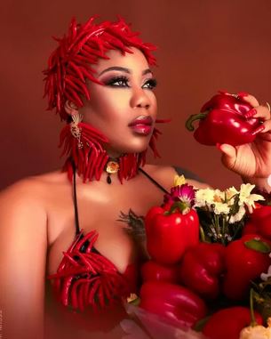 Nigerian celebrity stylist, Toyin Lawani has shared photos of her rocking an unconventional outfit inspired by pepper on Valentine's Day.