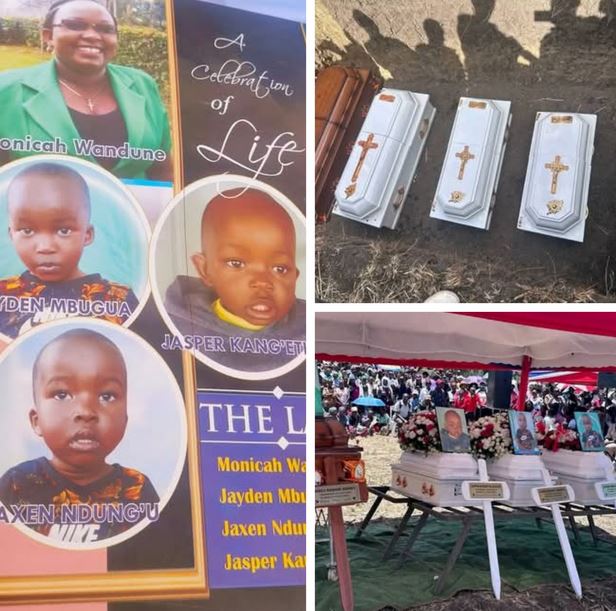A 35-year-old Kenyan woman, Monica Wandune Ndungu, who strangled her three children to d3ath before ending her own life has been laid to rest amid tears.