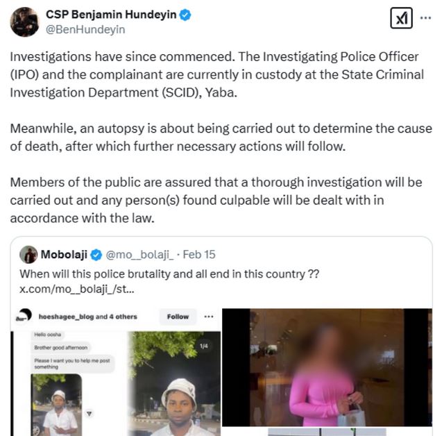 “Investigations have since commenced. The Investigating Police Officer and the complainant are currently in custody at the State Criminal Investigation Department, Yaba. Meanwhile, an autopsy is about to be carried out to determine the cause of death, after which further necessary actions will follow,” the PPRO stated.