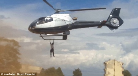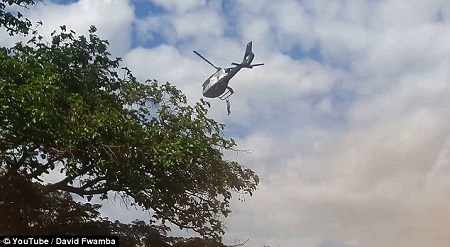 In a moment of madness 28-year-old Saleh refuses to let go even when the helicopter drops to the ground, reports Kenyan news site Standard Digital News.